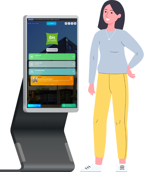 Une borne intelligente, autonome et personnalisée qui améliore l’accueil, réduit les files d’attente et modernise l’expérience utilisateur, tout en permettant une intégration profonde au système d’information du client.
